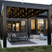 1. High Strength - This pergola with custom roof coverage contains a rust-proof aluminum frame in all weight-bearing components (5.7mm in 7x7 posts / 2.5mm 10-gauge in 2x8 box beams / 2.0mm 12-gauge in 2x6 rafters). When correctly installed with optional hurricane brackets, we offer a lifetime warranty for damage caused by high winds.